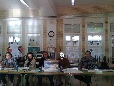 Espero que me toque de nuevo . Ah y naturalmente que la mesa se convirtió en tertulia política. En la foto a mi izquierda el interventor del PP, a mi derecha la presidenta y la otra vocal, y en el extremo izquierdo de la foto el interventor de CiU.